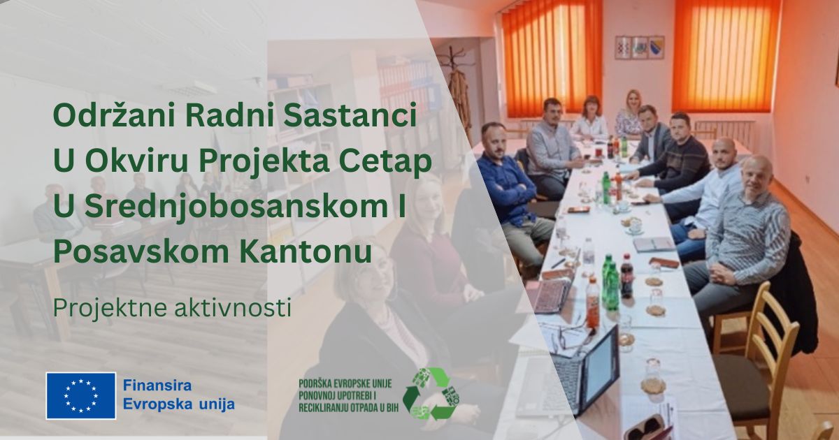 U okviru projekta CETAP (Tehnička pomoć za poboljšanje iskorištavanja materijala iz otpada kroz odvojeno prikupljanje, ponovnu upotrebu i reciklažu zasnovanu na principima cirkularne ekonomije), održani su radni sastanci u općinama Dobretići, Travnik i Kiseljak u Srednjobosanskom kantonu, te u Domaljevcu u Posavskom kantonu.